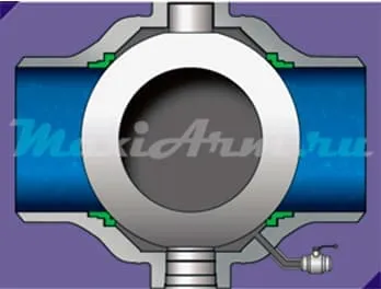 Сброс давления из «мёртвой зоны» корпуса осуществляется через дренажный или вентиляционный фитинги. Посадочные седла на входе и на выходе крана обеспечивают герметизацию «мёртвой