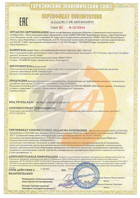 Декларация ТР ТС 032/2013, Шаровые краны BOEHMER