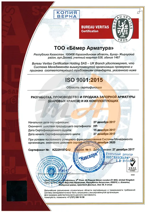 ISO 9001:2015 Шаровые краны Bohmer, Бёмер