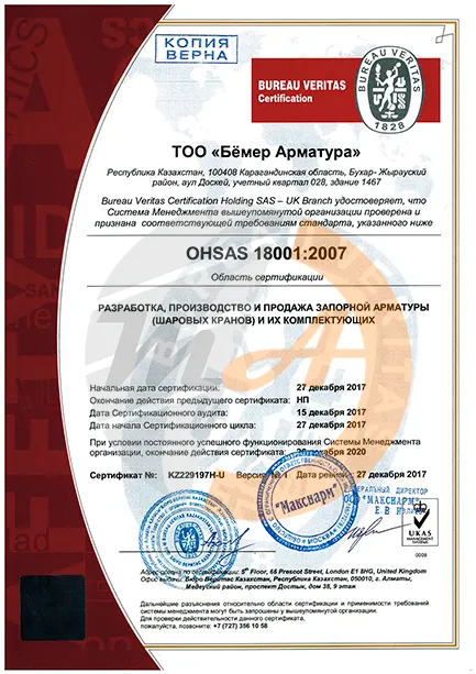 OHSAS 18001:2007 Шаровые краны Bohmer, Бёмер