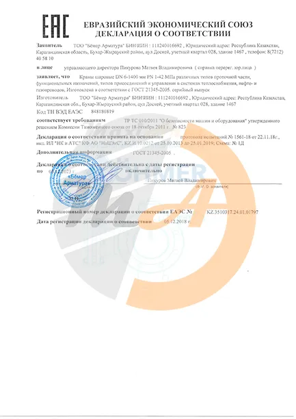 Декларация ТР ТС 010/2011,Шаровые краны Bohmer, Бёмер