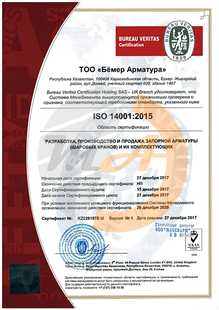 ISO 14001:2015 Шаровые краны Bohmer, Бёмер