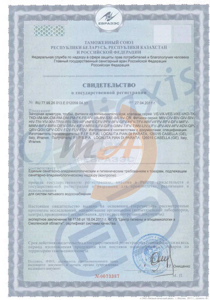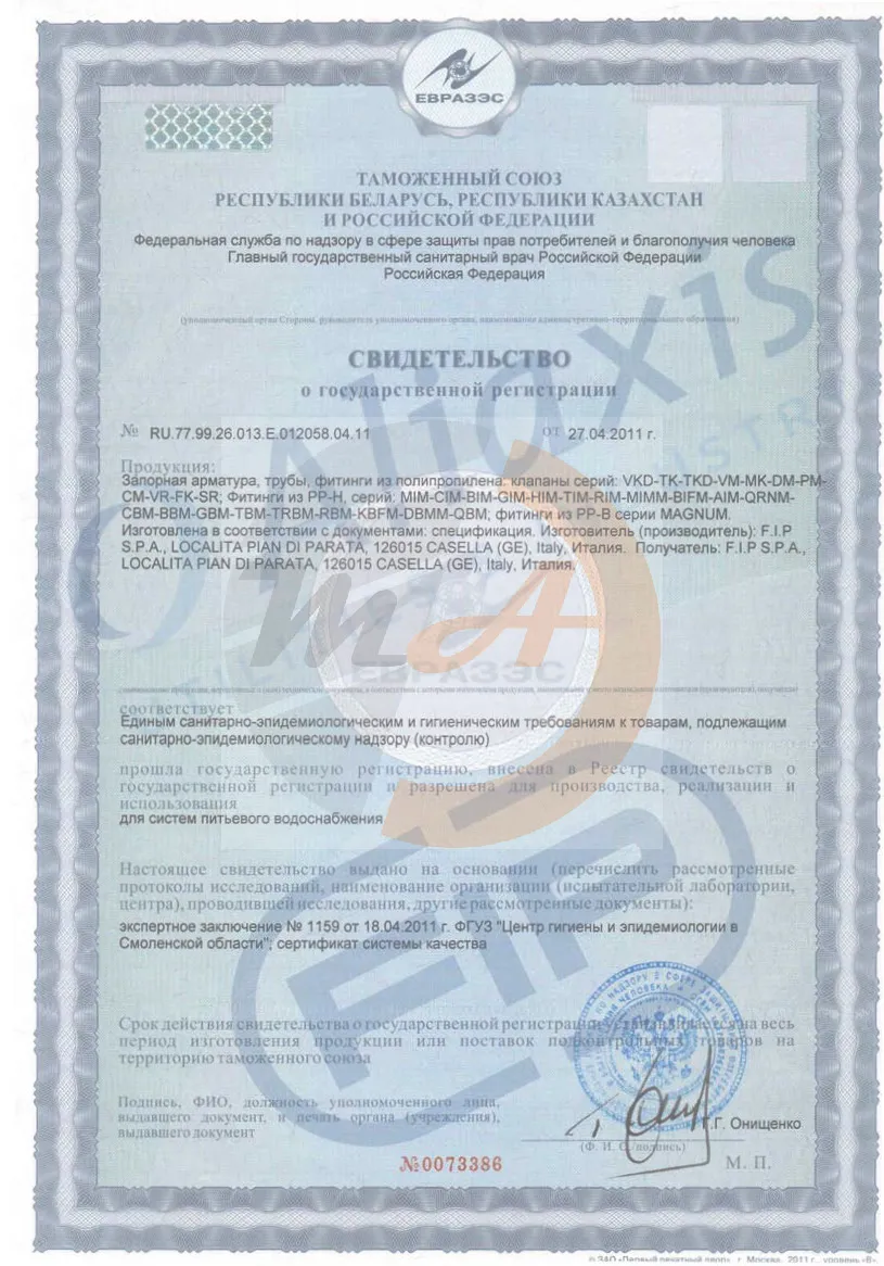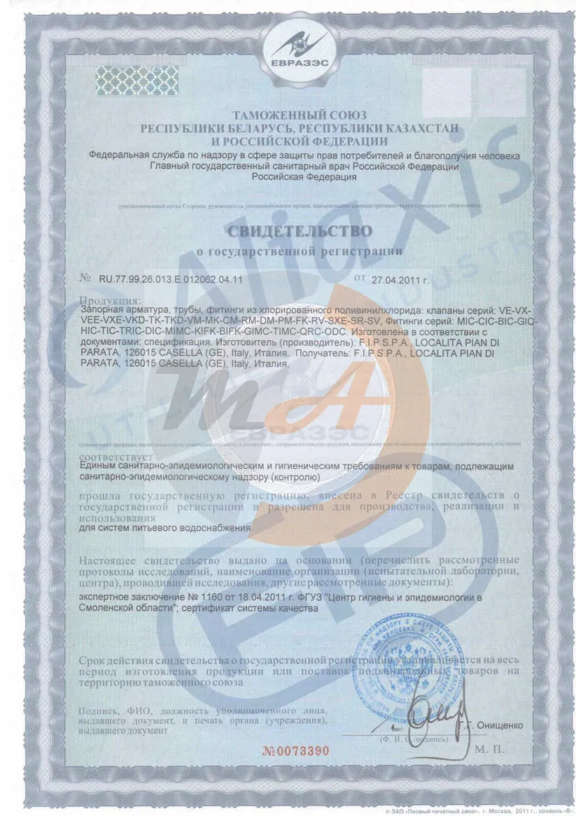 Сертификат ГОСT, FIP, Запорная арматура CPVC/ХПВХ