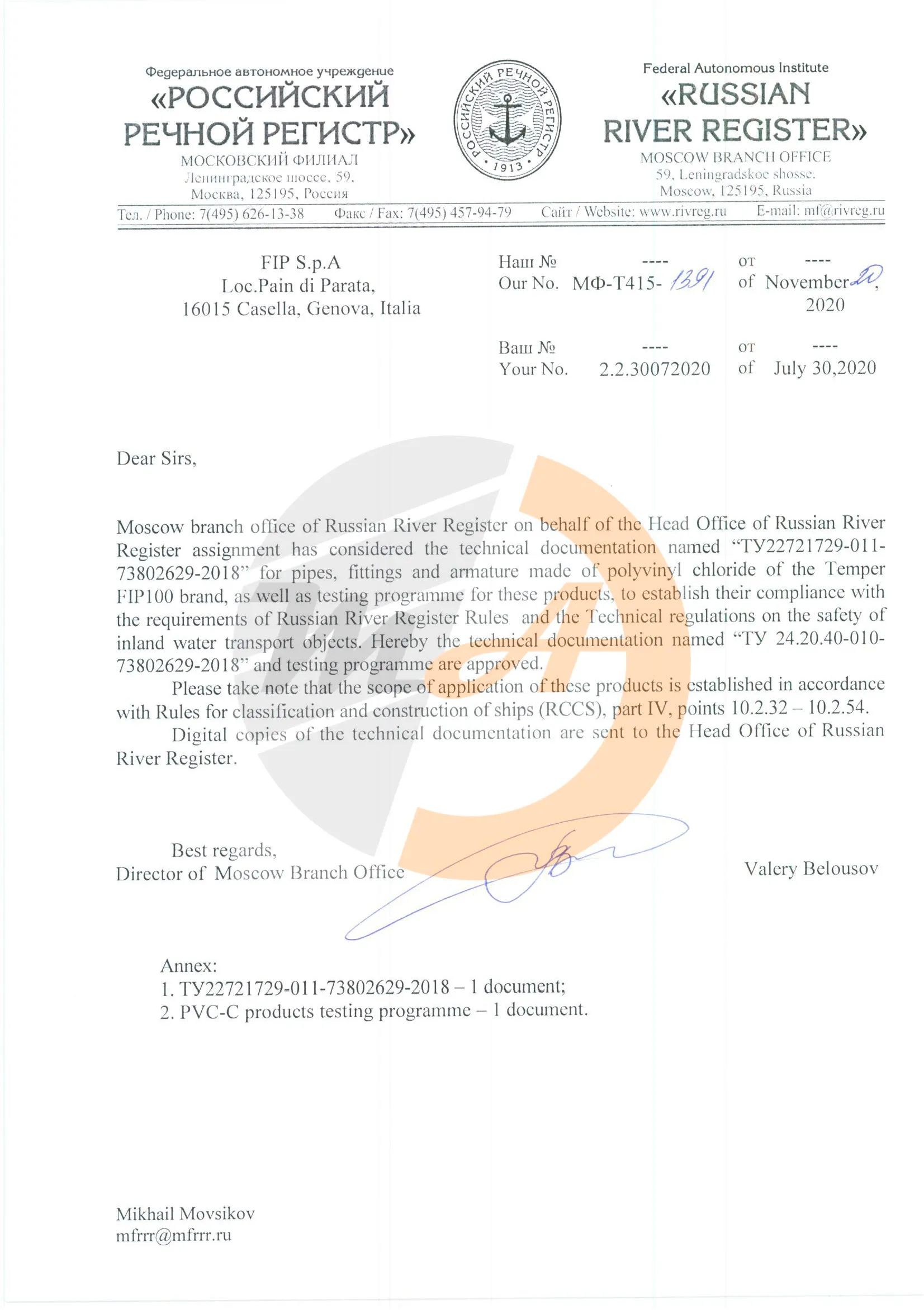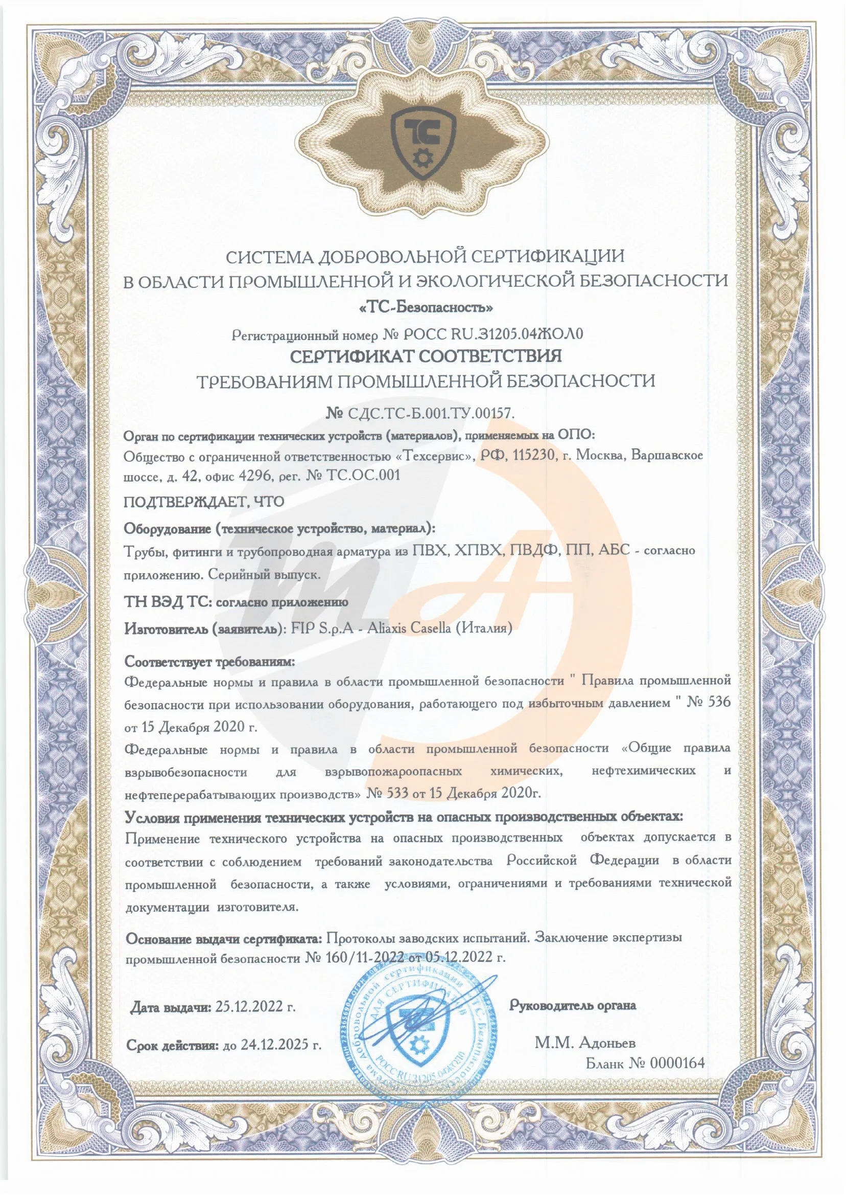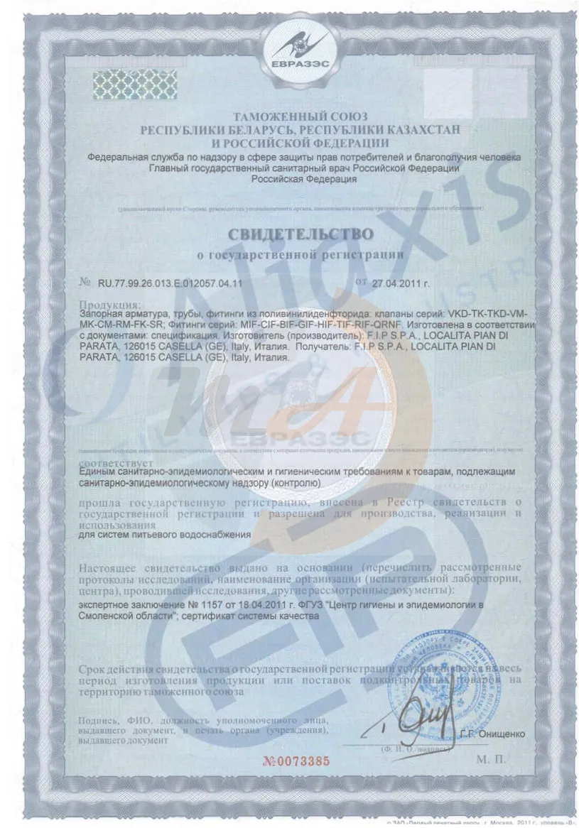 Сертификат ГОСT, FIP, Трубы, Фитинги PVDF/ПВДФ