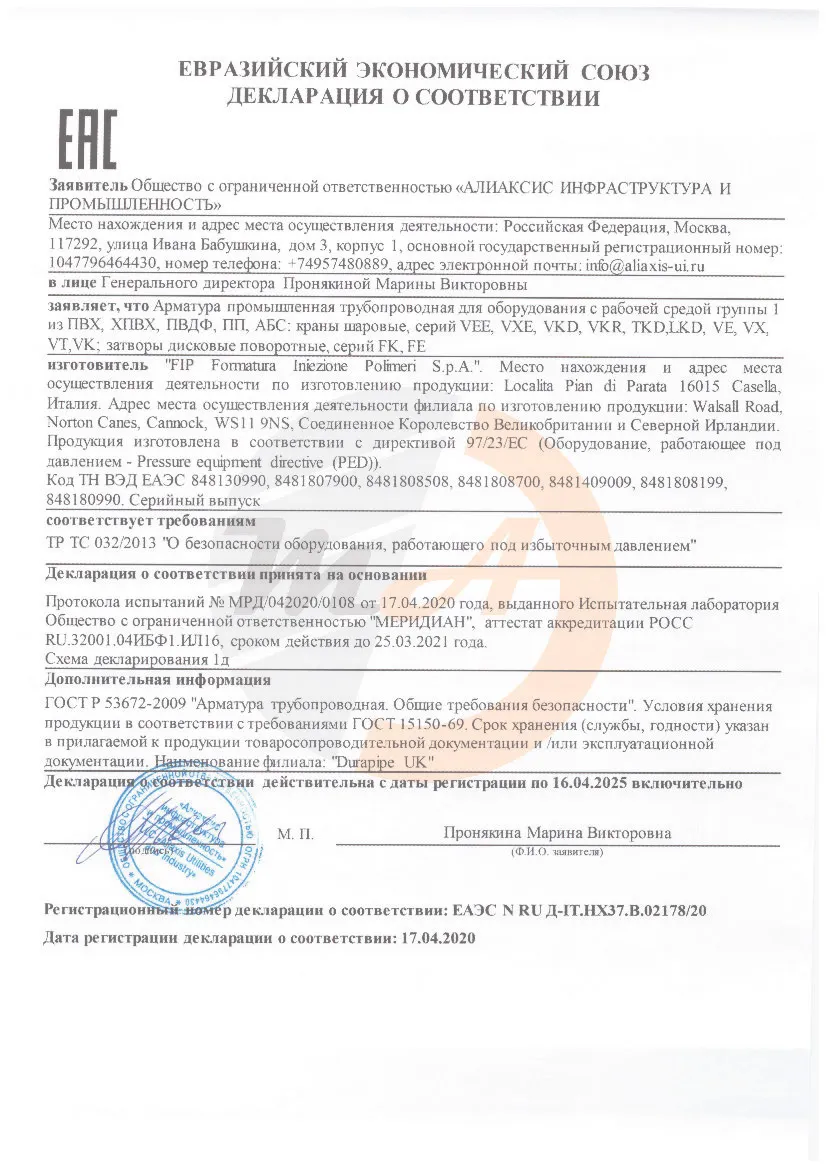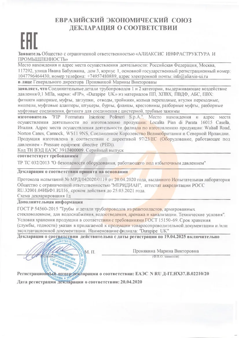Декларация ТР ТС 032/2013, FIP, Фитинги ПВХ, ХПВХ, ПП, ABS
