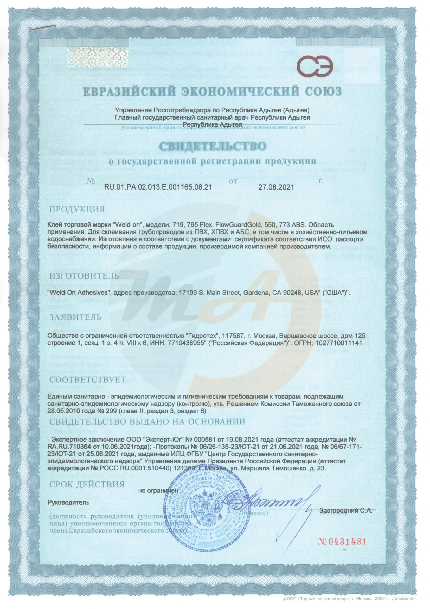 Сертификат ГОСТ, WELDON, Клей 719, 795, 550, 773